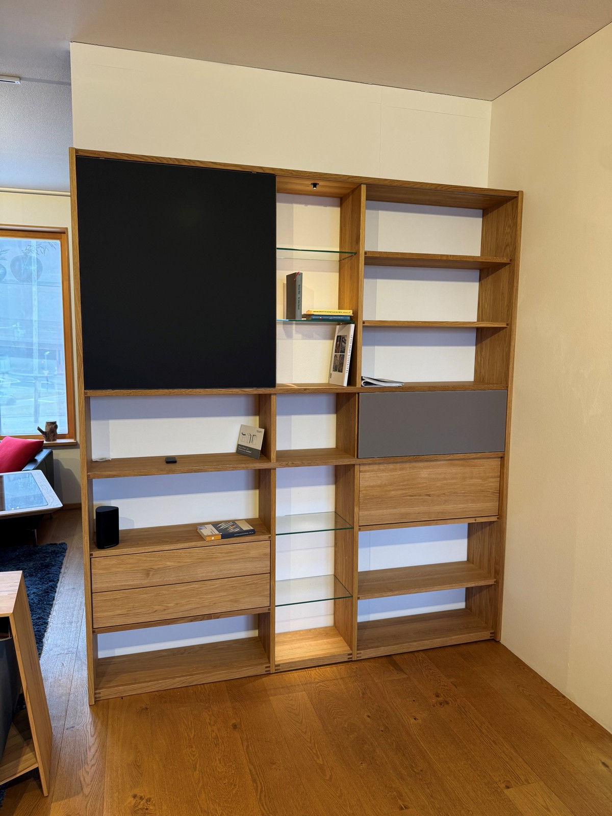 TEAM 7 Wohnwand, Eiche geölt, Glas bronze matt